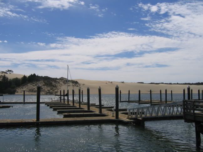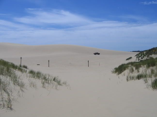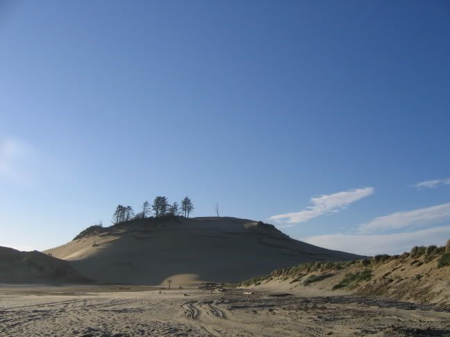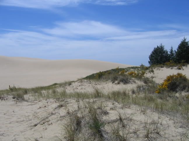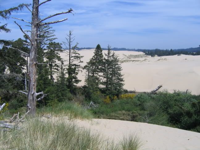 Directly north of Coos Bay is where the Oregon dunes begin. If you haven't heard of this area you're in the same boat I was. Imagine: you've spent days driving through several hundred miles of Douglas Firs, when all of a sudden you are no longer in a forest at all, but a big sandy desert. A big sandy desert with Douglas Firs sticking out of it.
