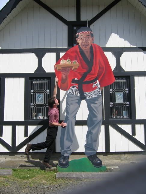 This big asshole wouldn't share his sushi with me. Fortunately I met some new friends named Charity and Laurie who helped me knock him over. The giant sushi was enough to last us a week. We decided to travel together - first there was a dissapointing trip to the Ripley's Believe It Or Not Museum (not nearly cheap or cheesy enough for us), then we decided to split a campsite in Tillamook bay. Both of these girls had these wonderful flashlights that you wear on your head - very useful, and fashionable as well. I vowed to find one of my own as soon as possible. We told some ghost stories (mine we terrible... the only ones I know are basically jokes which can be rearranged in order to make them creepier) and then slept.